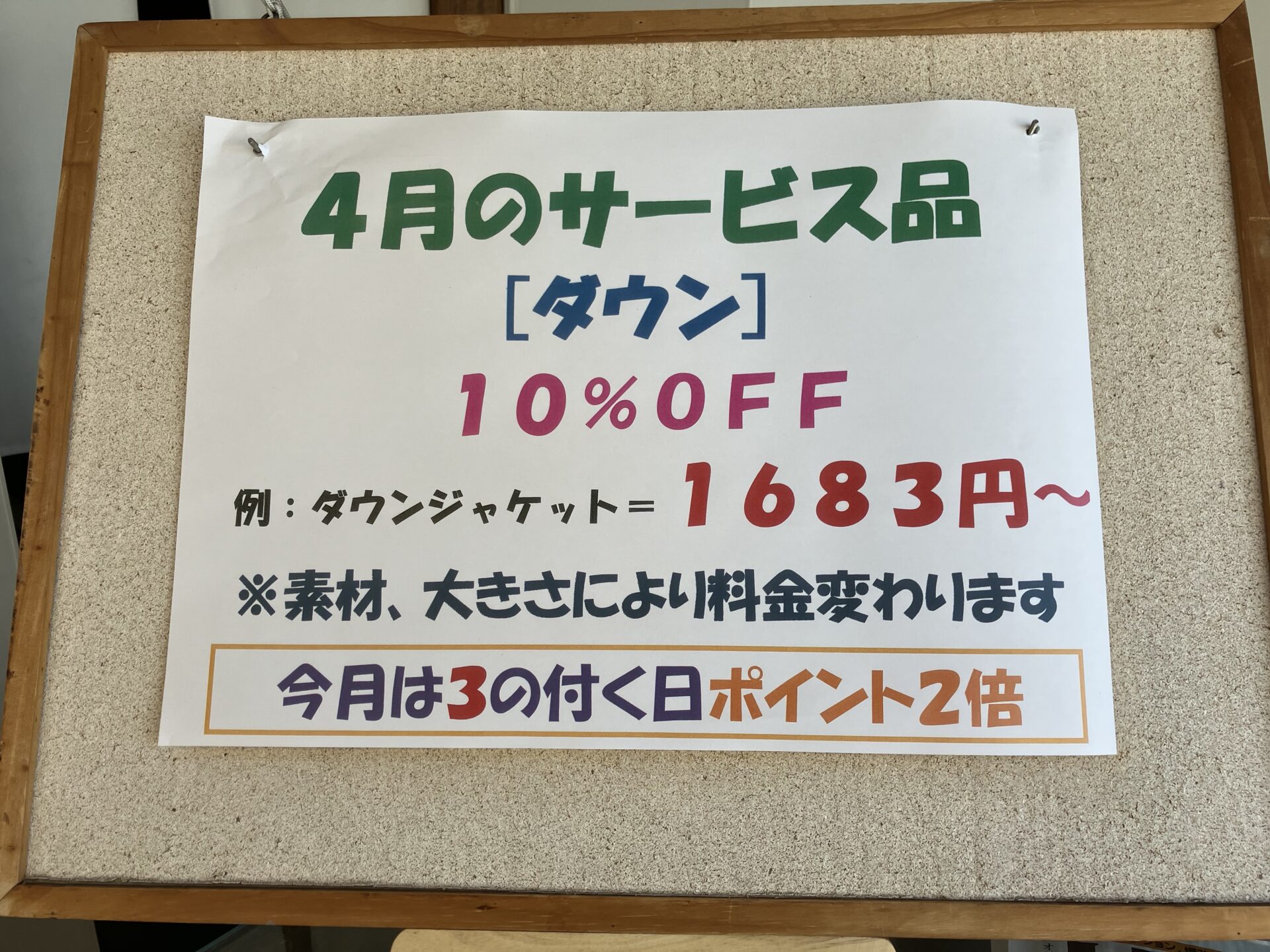 4月のサービス品は「ダウン」10%OFF!