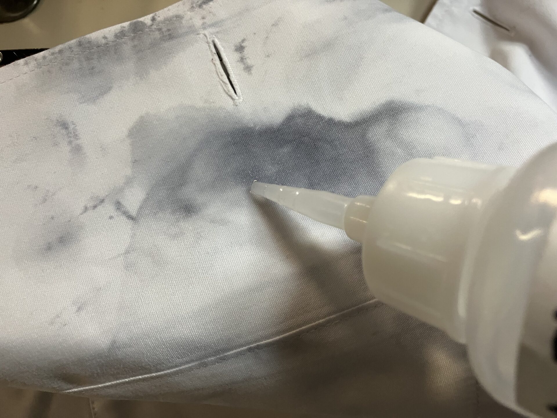 インクを良く落とすシミ抜き剤を塗布。