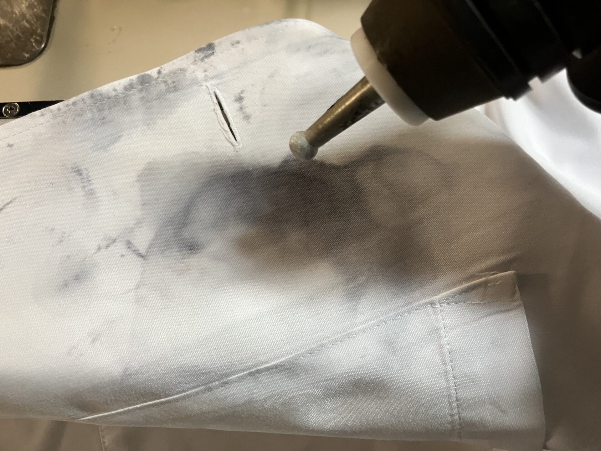 本日は派手にパンクしたインクのシミ抜きの様子のご紹介です。